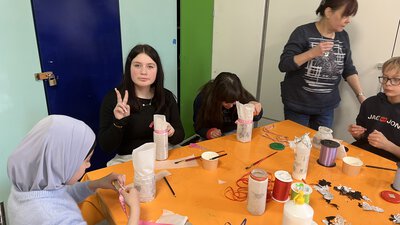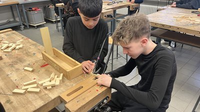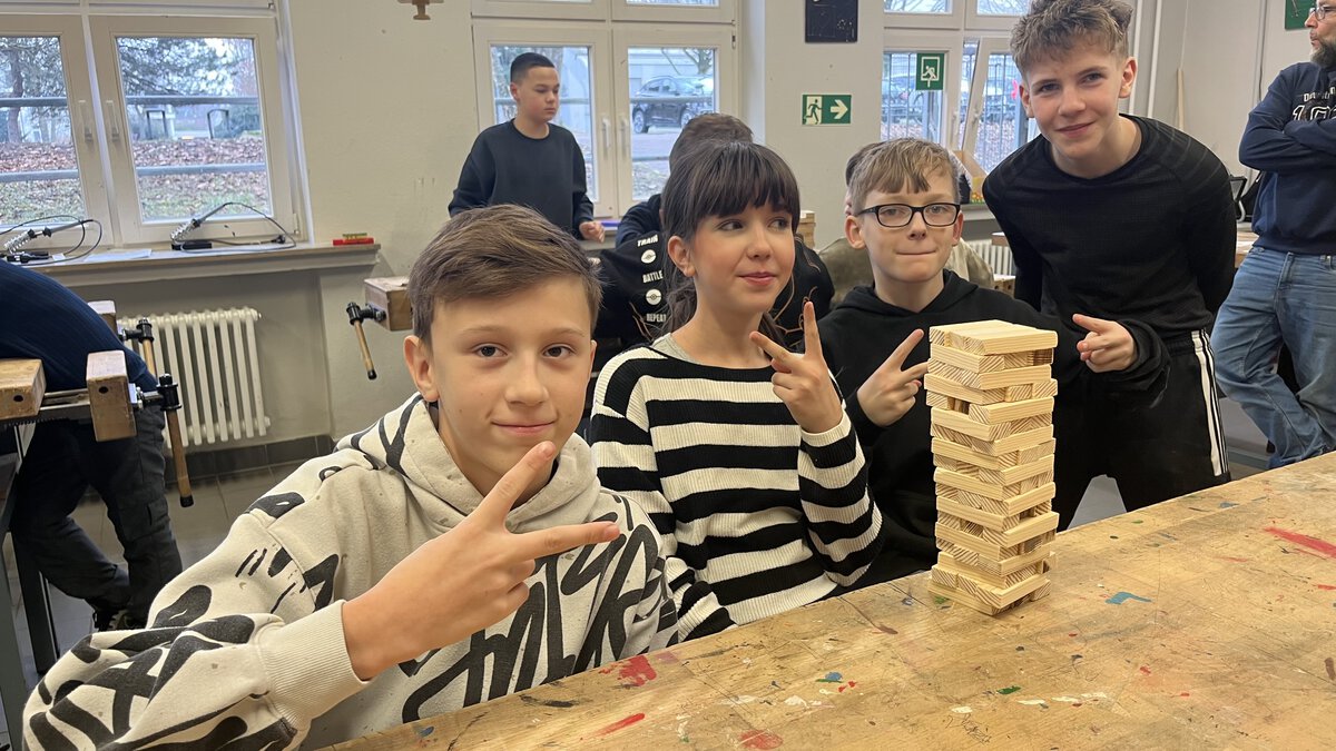 Zudem besuchte die Jahrgangsstufe 6 das Freizeitzentrum Lüner Höhe. Dort konnten die Schülerinnen und Schüler in verschiedenen Workshops eigene Gegenstände herstellen und handwerkliche Fähigkeiten ausprobieren.