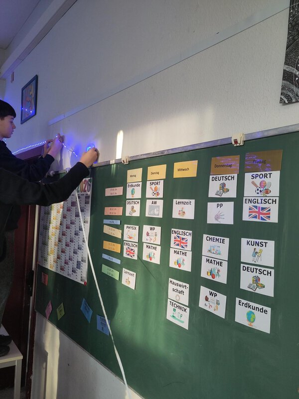Die Klasse 8c nutzte die Kreativtage, um ihren Klassenraum neu zu gestalten. Mit eigenen Ideen und viel Teamarbeit schufen die Schülerinnen und Schüler eine Lernumgebung, die ihren Wünschen entspricht und in der sie sich wohlfühlen.